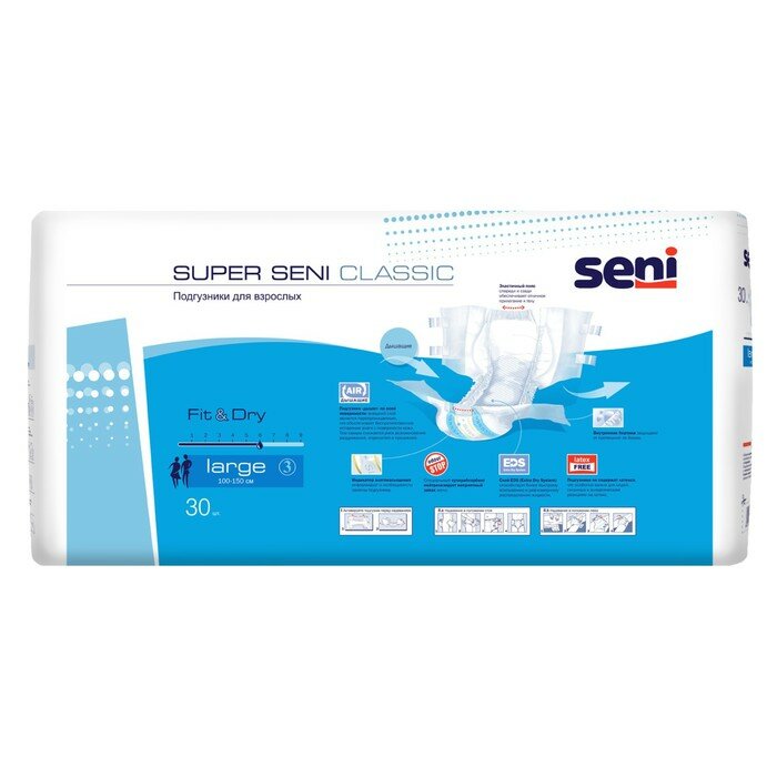 Подгузники для взрослых Seni Super, L, 100-150 см, 30 шт.