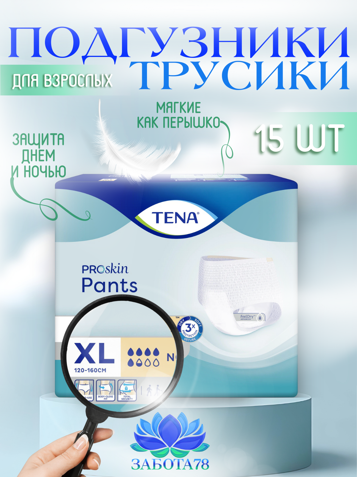 Тена Пантс ПроСкин Нормал, подгузники-трусы для взрослых (XL), 15 шт.