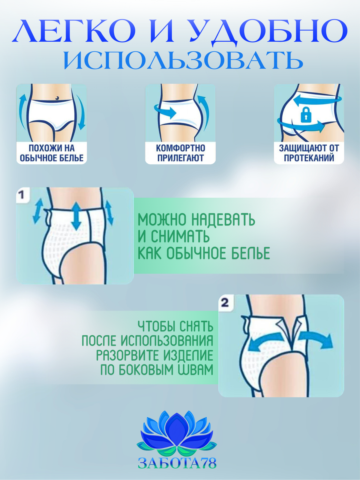 | Плюсы: | Удобные, хорошая цена, подходят при легком недержании, больному удобно самому надевать |