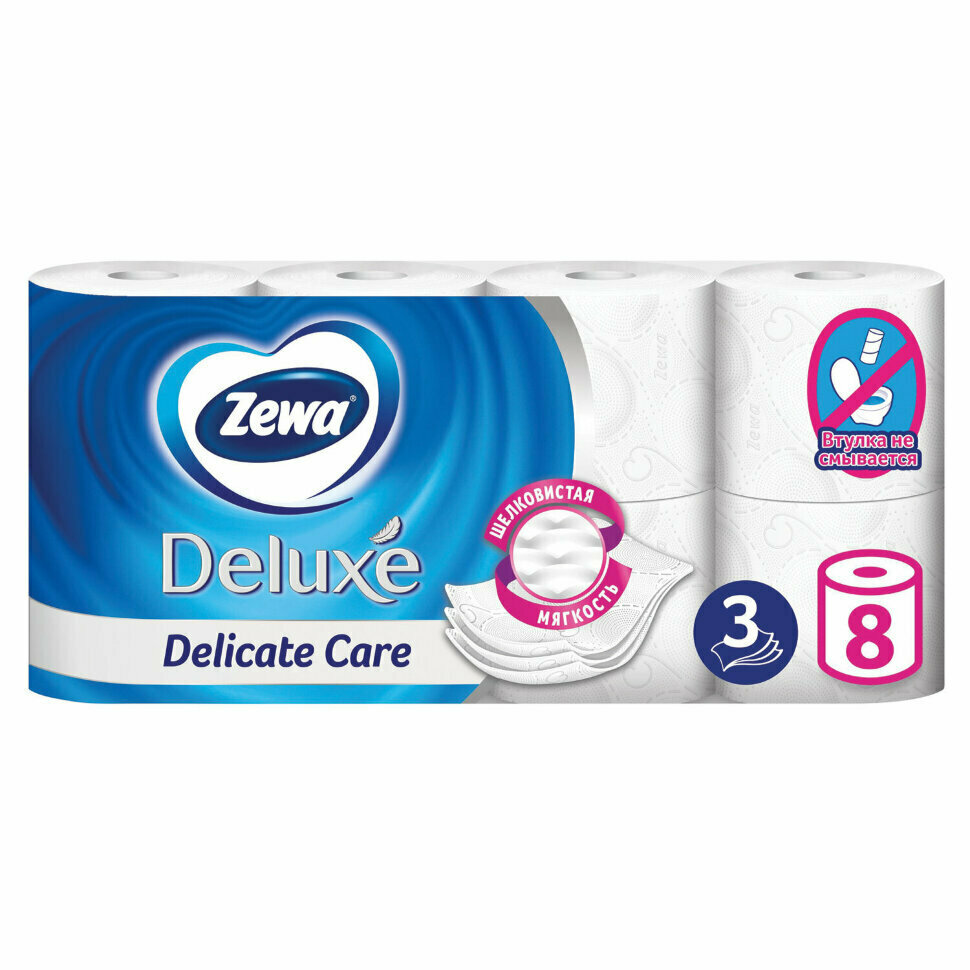 Бумага туалетная ZEWA Deluxe 3-слоя белая, 8шт