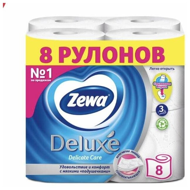 Туалетная бумага Zewa Deluxe Delicate Care, 3 слоя, 4 рулона цвет: белый