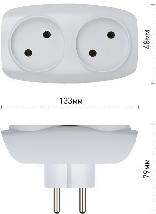 Разветвитель на 2 розетки универсальный белый ЭРА SP-2-W