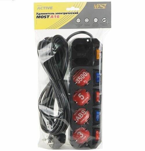 Сетевой удлинитель Most A16, 5м, черный [a16 5]