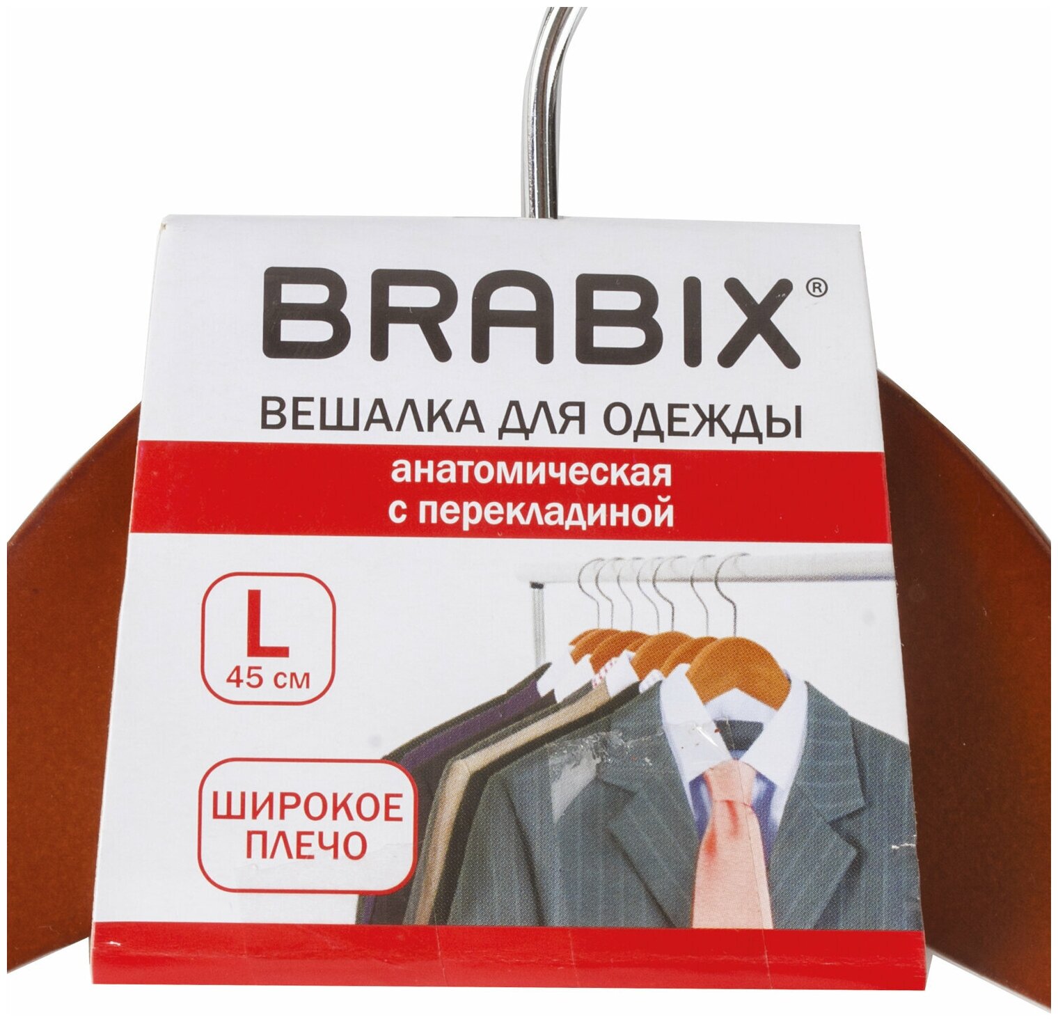 Вешалка-плечики деревянная анатомическая Brabix "Люкс", антискользящая перекладина, длина 45см, вишня, 1шт. (601164)