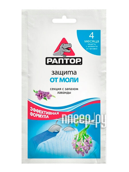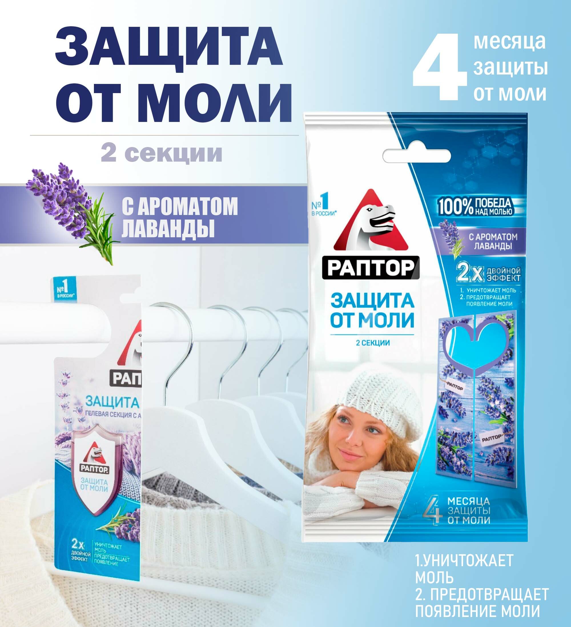 Средство от моли раптор с ароматом лаванды, 2 уп. по 2 секции / защита от моли
