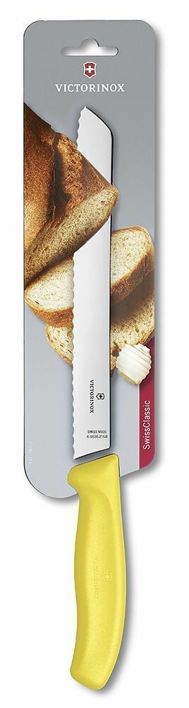 Нож для хлеба VICTORINOX SwissClassic, лезвие 21 см с волнистой кромкой, жёлтый, в блистере 6.8636.21L8B
