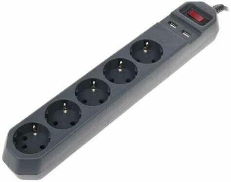 Сетевой фильтр USF-5es-1.5m-USB-B ЭРА (черный) с заземл, 3x0,75мм2, с выкл, 5гн+2USB, 1.5м