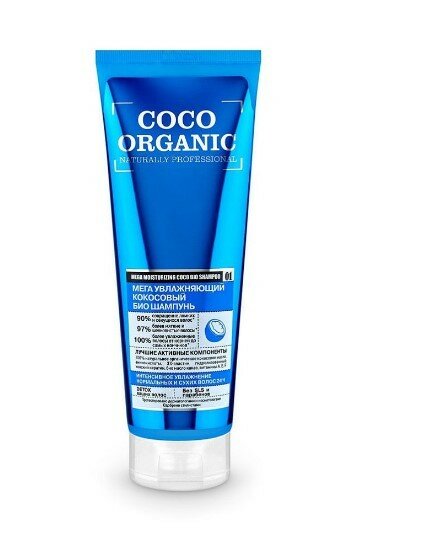 Organic Shop био-шампунь Coco Organic naturally professional Мега увлажняющий кокосовый, 250 мл