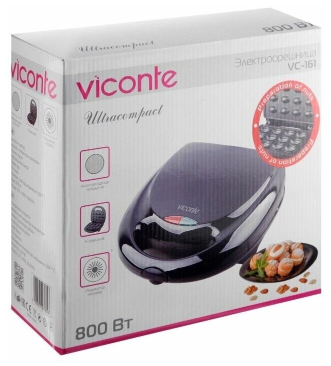 Вафельница Viconte VC-161 орешница черная 800Вт интересное: