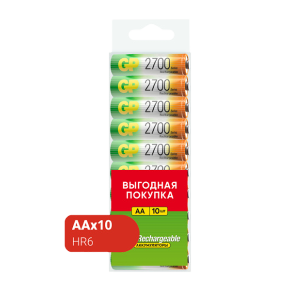 Аккумулятор GP, Rechargeable, AA, HR6-10S, 1.2В, 2700 мАч, спайка, 10 шт.