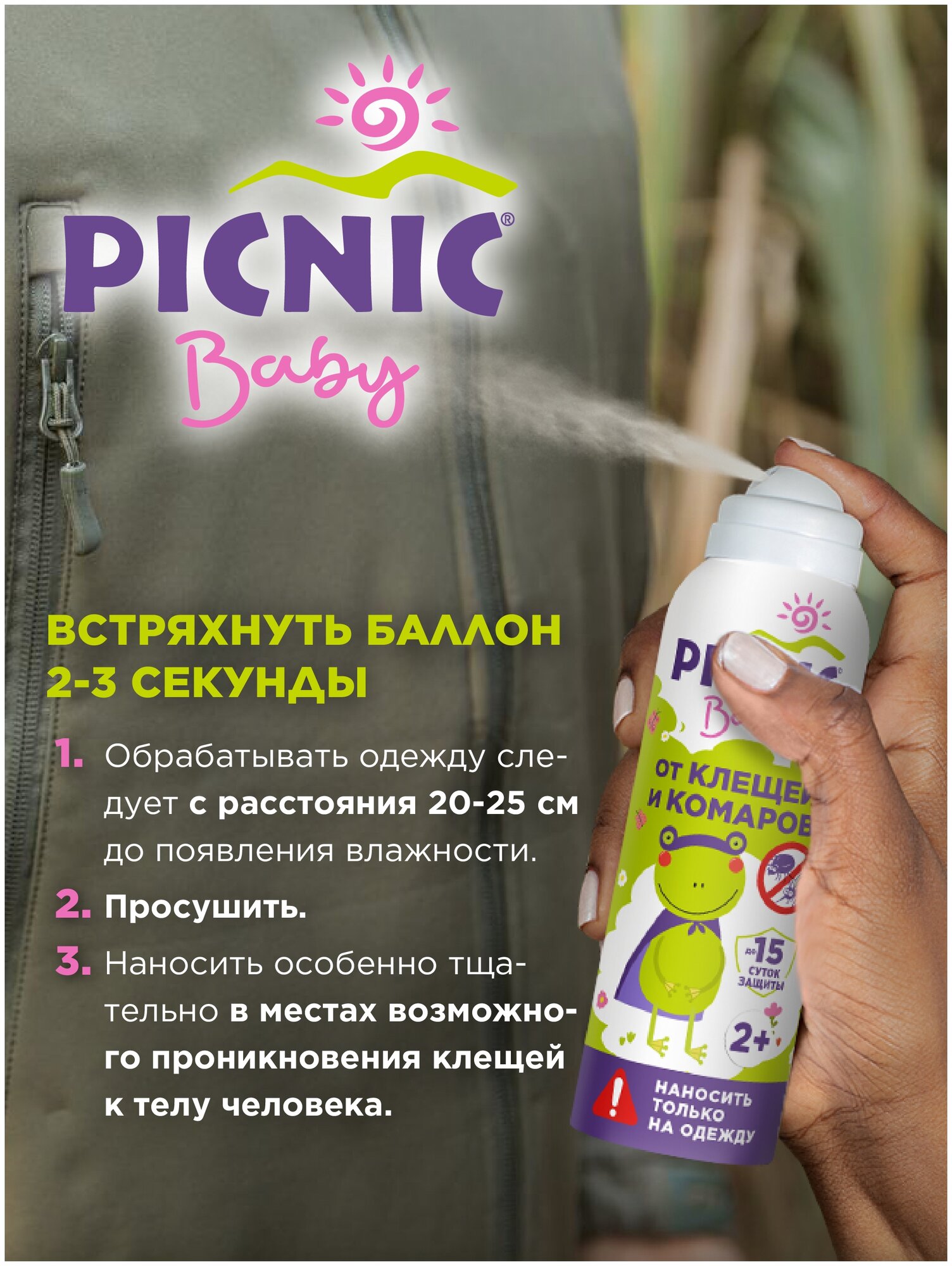 Средство от клещей и комаров для детей от 2 лет Пикник Baby, аэрозоль - 125 мл