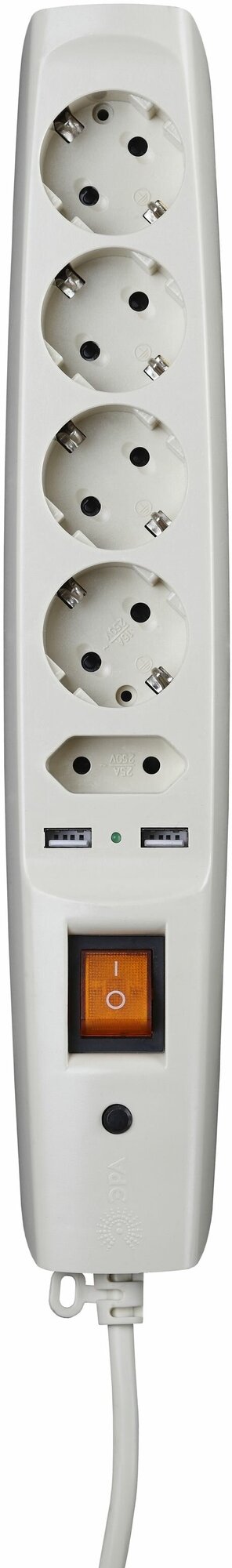 Сетевой фильтр SFU-5es-2m-I Эра (сл. кость) с заземл, 3x1мм2, со шт, с выкл, 5гн+2xUSB, 2м, кор