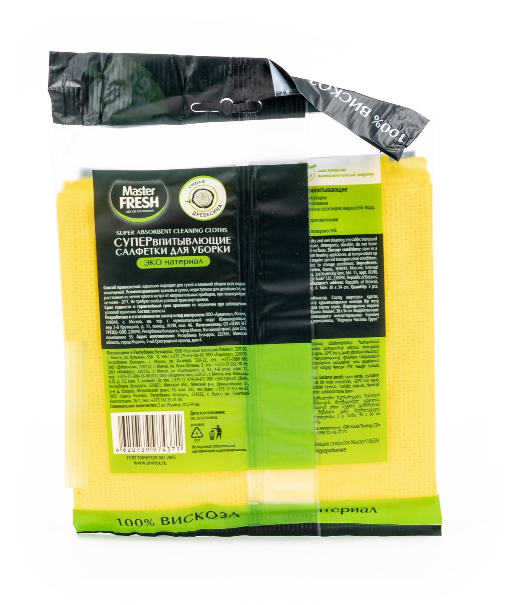 Купить Салфетки для уборки 3ШТ 30*35 вискоза супер впитывающие MASTER FRESH