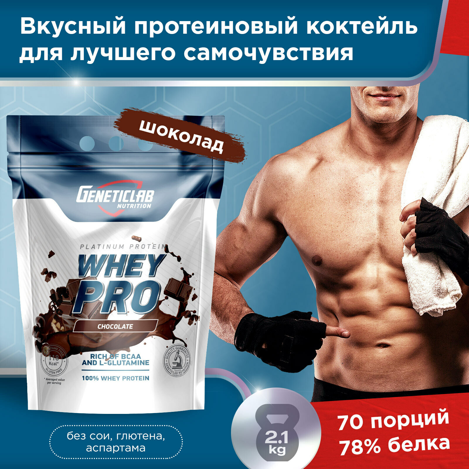 Сывороточный протеин Geneticlab Whey Pro, шоколад, 2100 г
