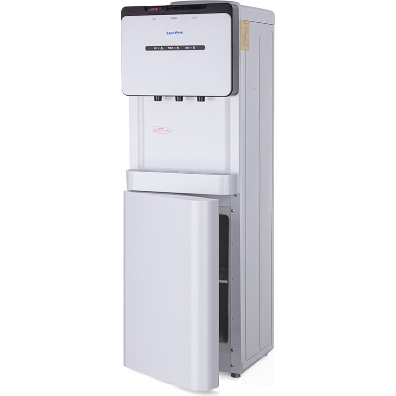 Кулер для воды Aqua Work YLR2-5-V908 / Белый / Напольный / Нагрев / Компрессорное охл / Три кнопки подачи воды / Защита от детей / Шкафчик