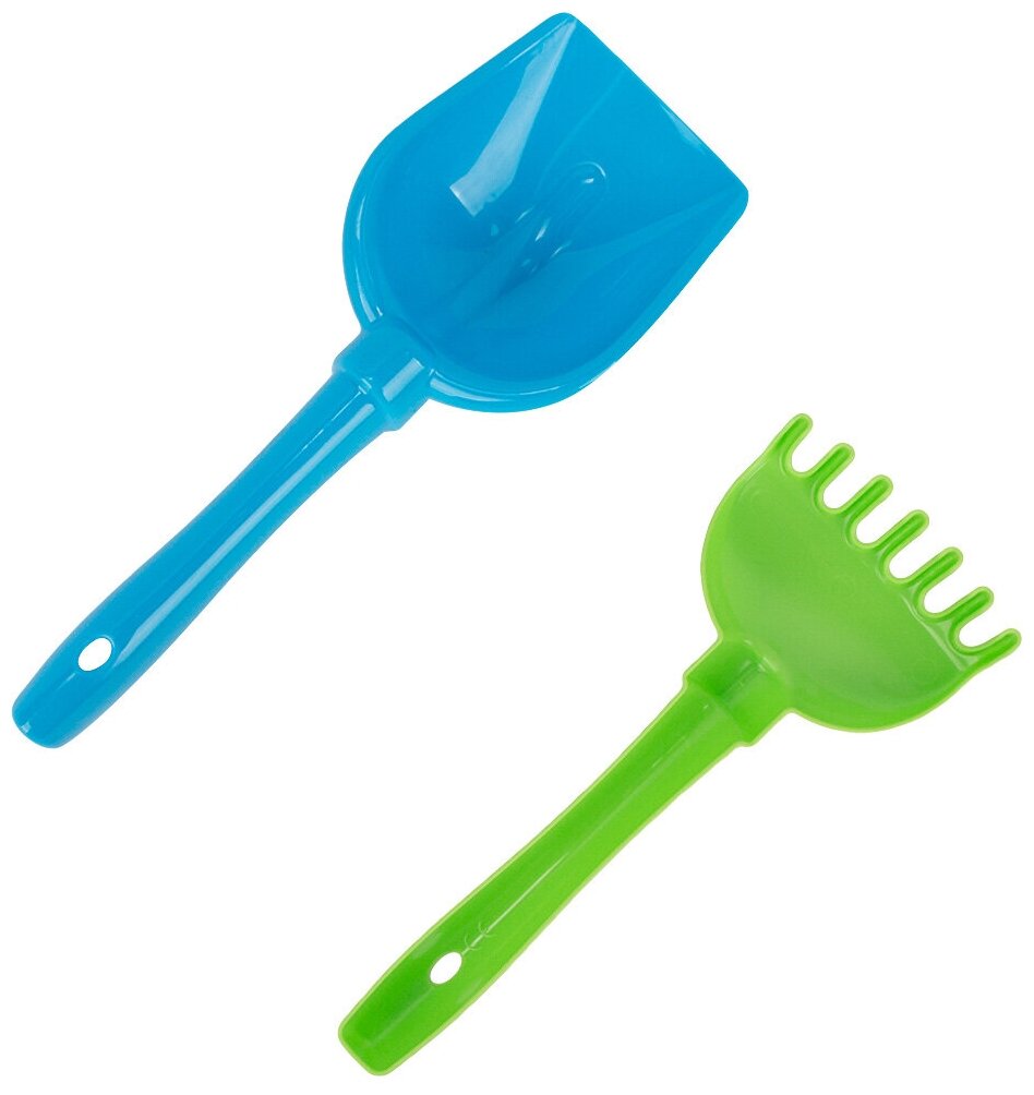 Набор №124 (Ведро с наклейкой, лопатка №5,грабли №5, 2 формочки, лейка большая П-9111-no интересное: