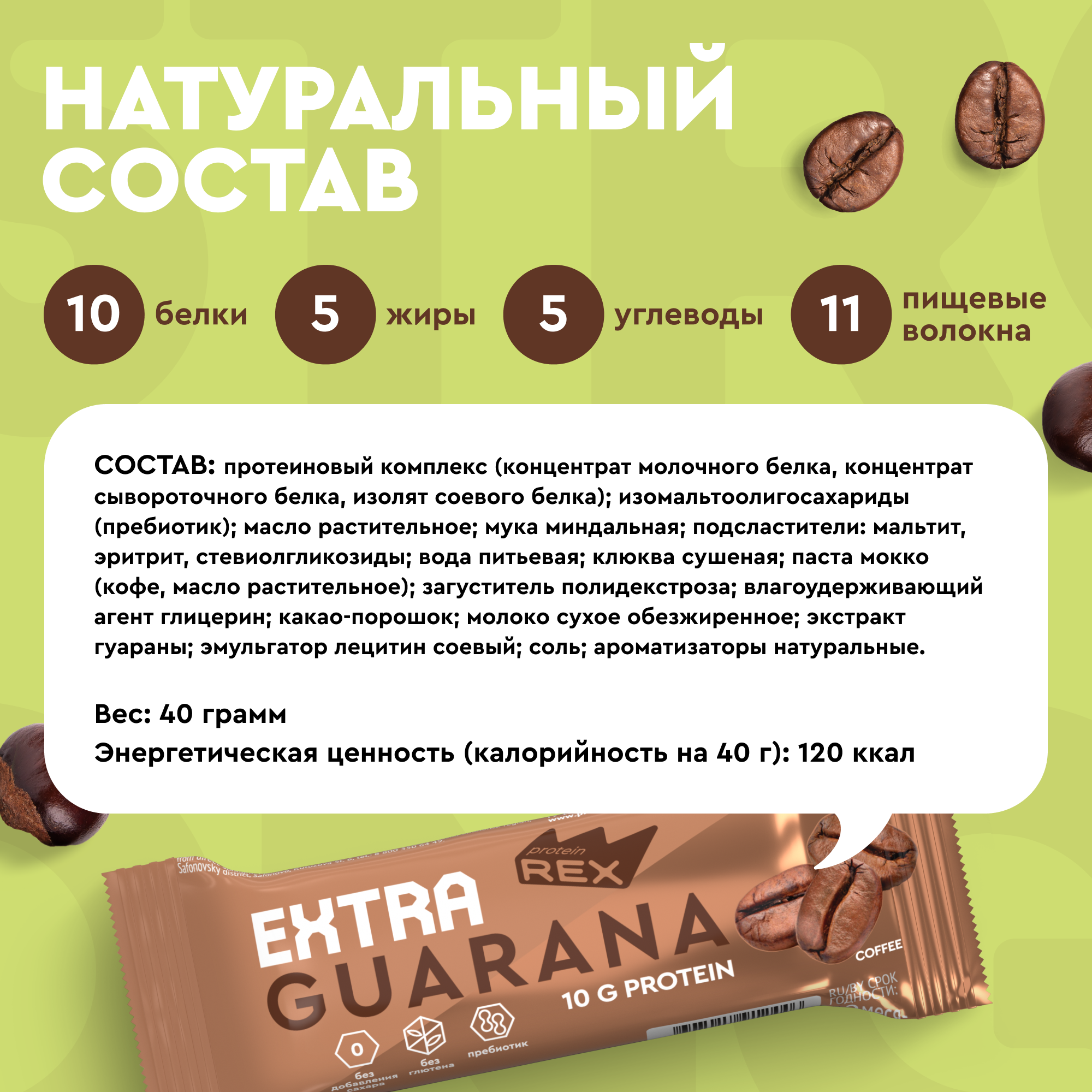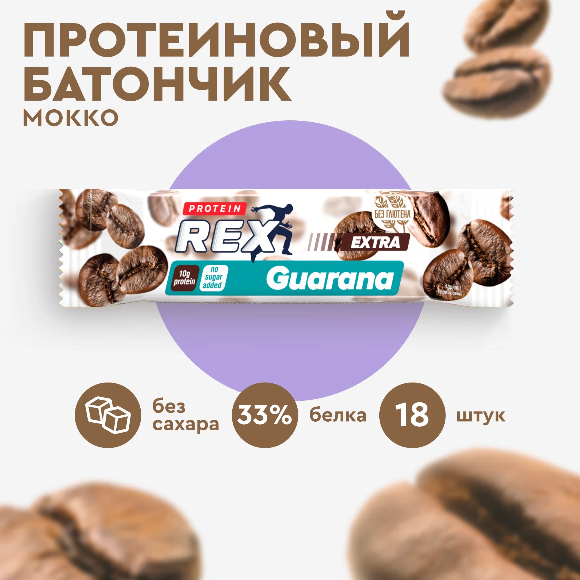 Протеиновые батончики без сахара ProteinRex EXTRA (Экстра) с экстрактом гуараны (мокко), ПП еда, спортивные батончики 18 шт х 40 г, 120 ккал