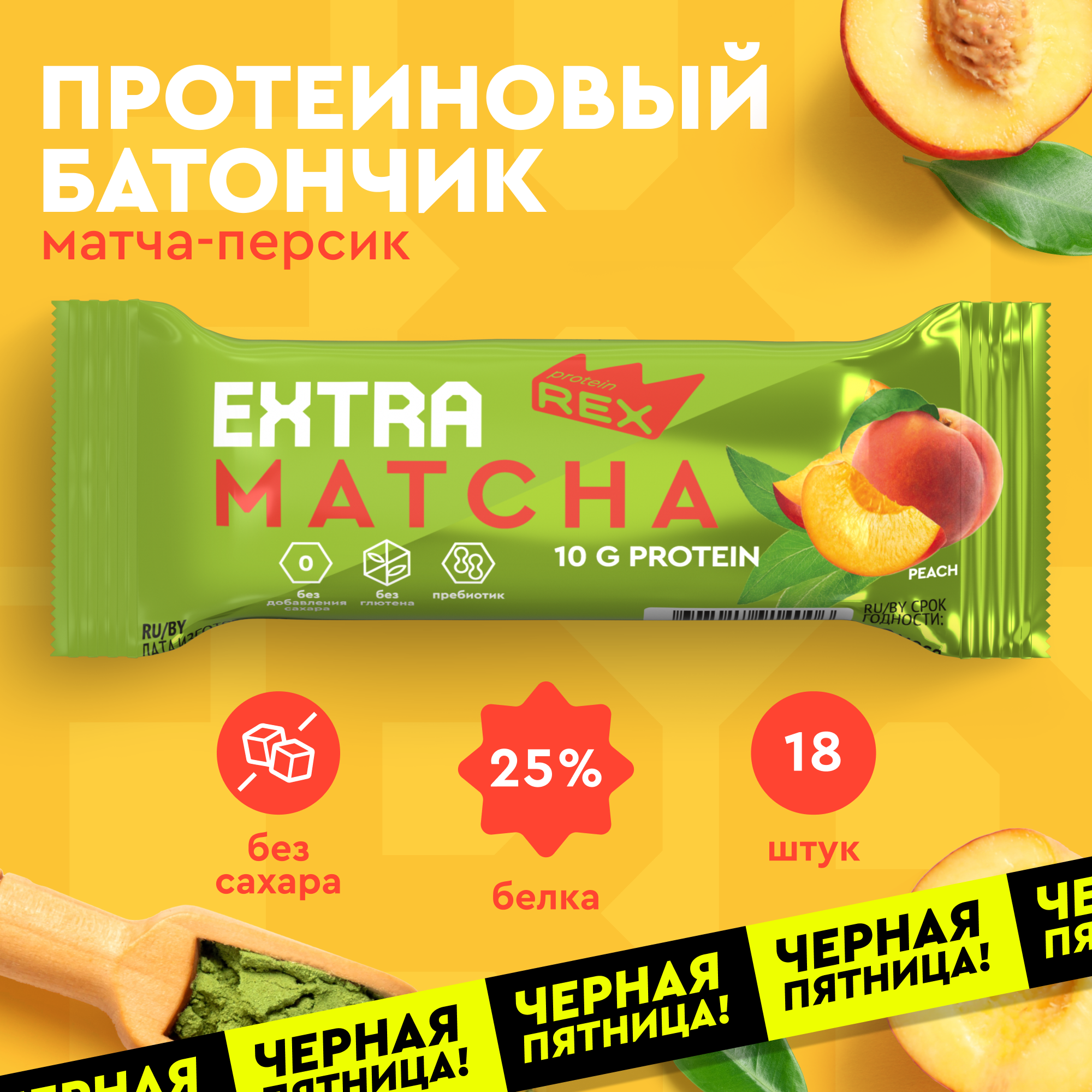 Протеиновые батончики без сахара ProteinRex EXTRA (экстра) с чаем матча (матча-персик), спортивное питание, спортивные батончики 18 штх 40 г, 120 ккал