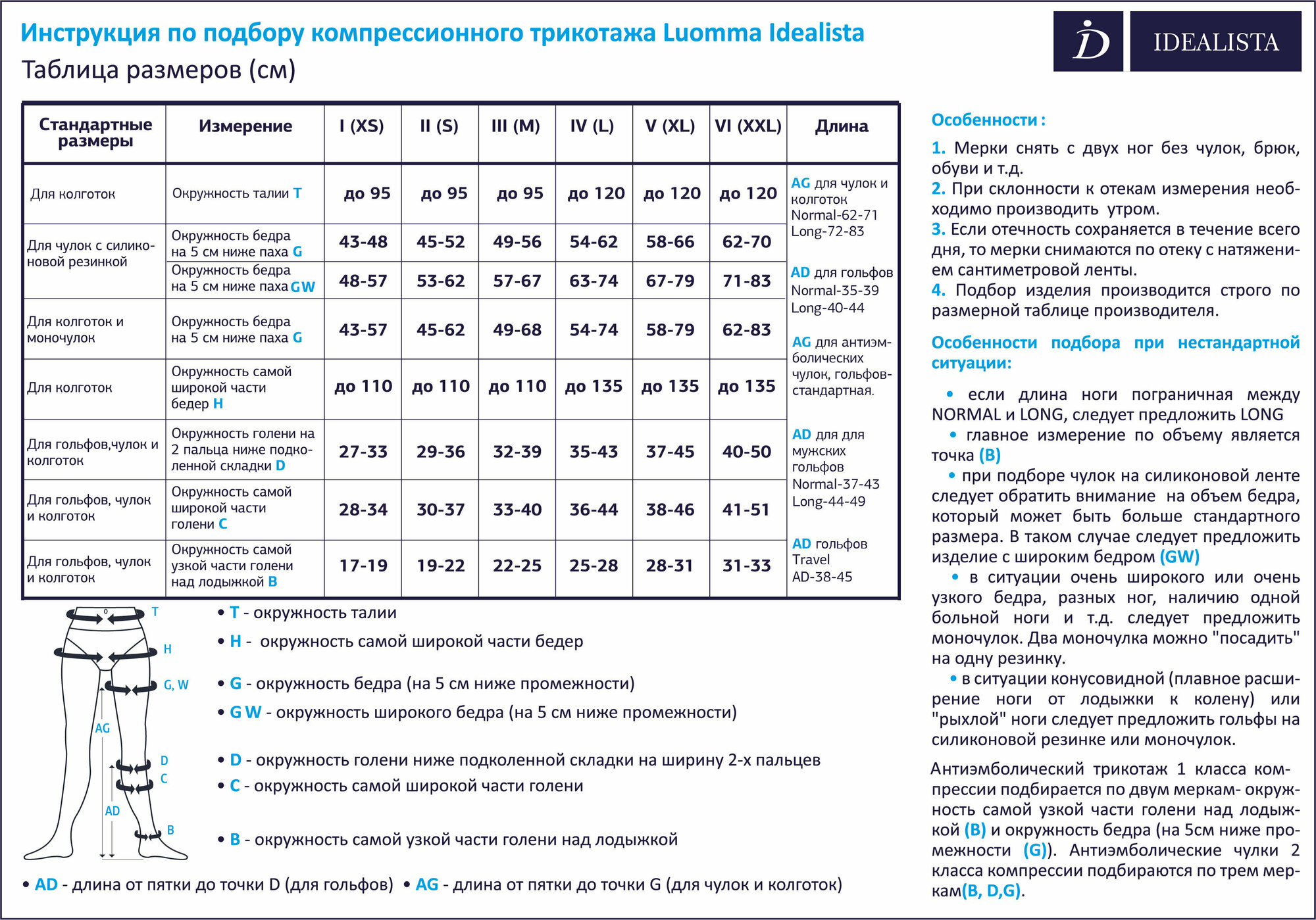 Чулки компрессионные Idealista ID-310, 1 класс, противоварикозные, Размер XL, Длина 72-83, Черный