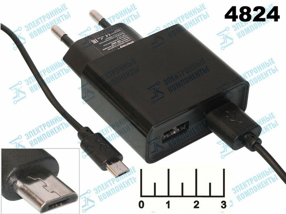 Зарядное устройство 220V -> USB 5V SmartBuy SBP-6050, 2xUSB, 3000mA, черный + кабель microUSB