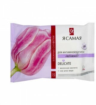 Салфетки влажные для интимной гигиены Я Самая Intimate Delicate с соком алоэ вера и молочной кислотой 15 шт