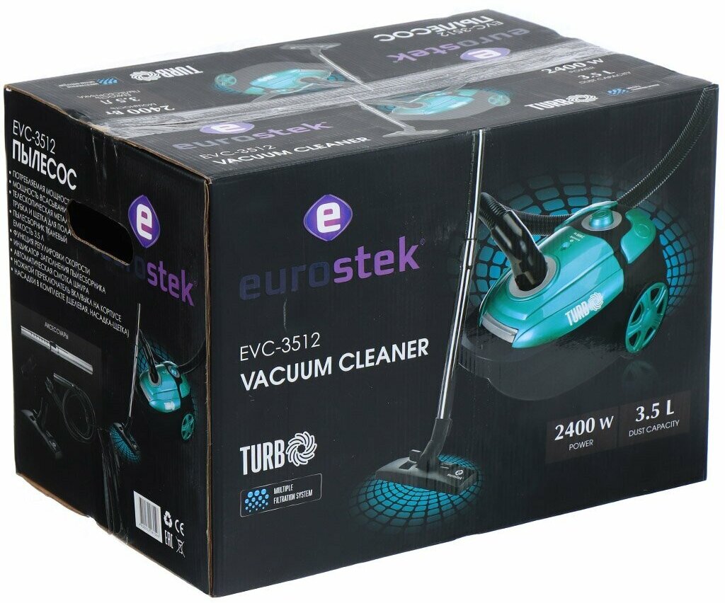 Пылесос Eurostek EVC-3512, с мешком, 2400/420Вт. пылесборник 3,5л. Зеленый