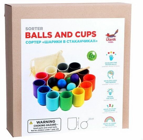 Развивающий набор / сортер для детей Шарики в стаканчиках. Большие / Ulanik
