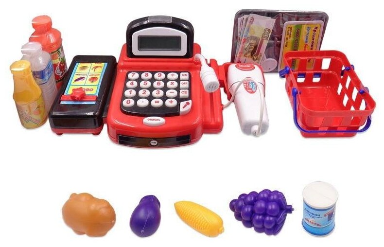 Купить Касса Помогаю Маме , в наборе с продуктами и аксессуарами (31 предмет), с эффектами, на батарейках