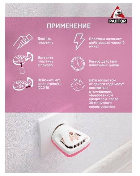 Пластина для фумигатора Раптор Некусайка для детей, 10 г, 10 шт.