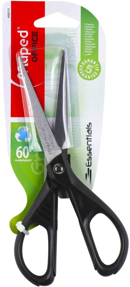 Ножницы MAPED (Франция) "Essentials Green", 210 мм, черные, эргономичные ручки, картонная упаковка с европодвесом, 468110