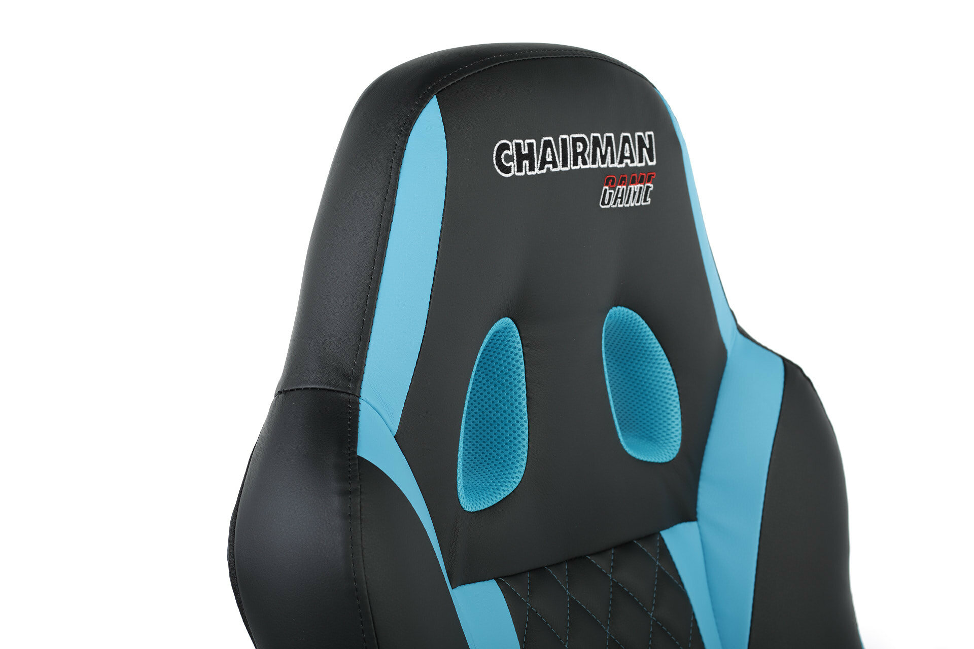 Игровое компьютерное кресло с откидными подлокотниками CHAIRMAN GAME 15, экокожа, черный/голубой