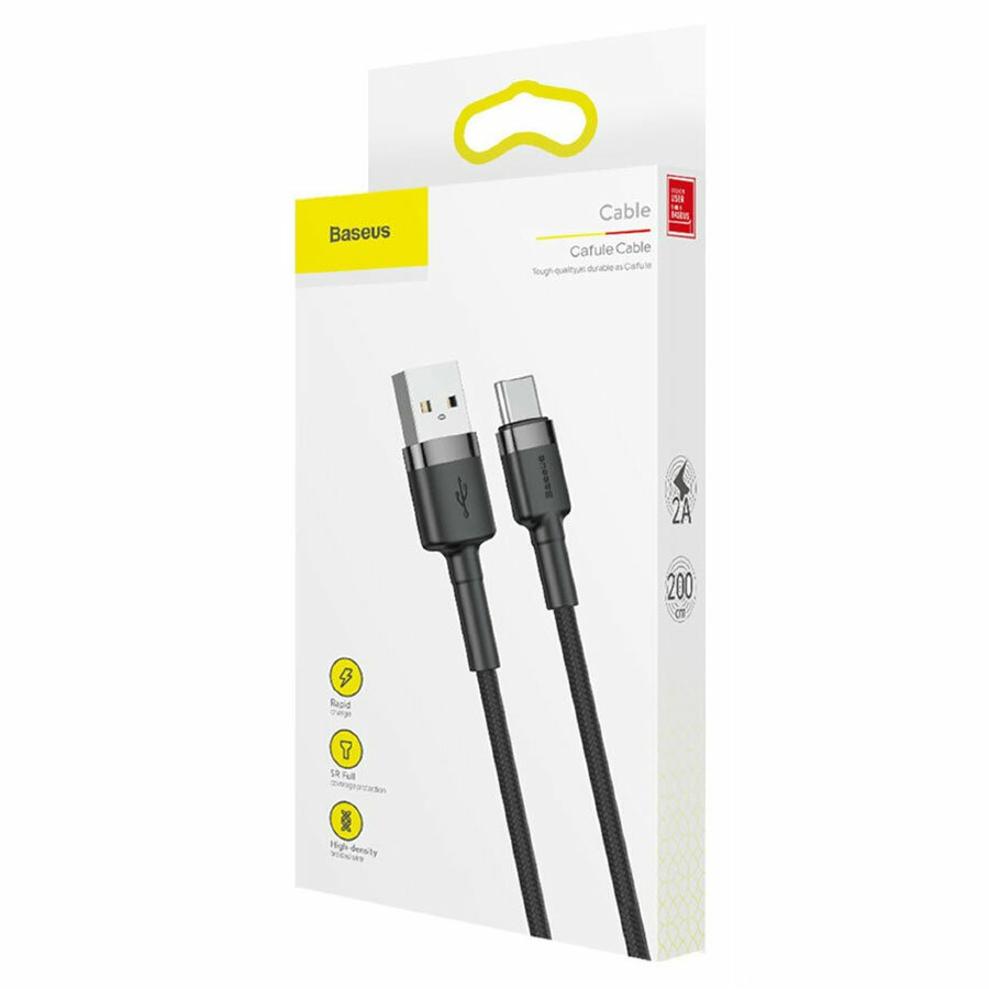 Купить Кабель Baseus Cafule USB - USB Type-C, 2 м, 1 шт., черный