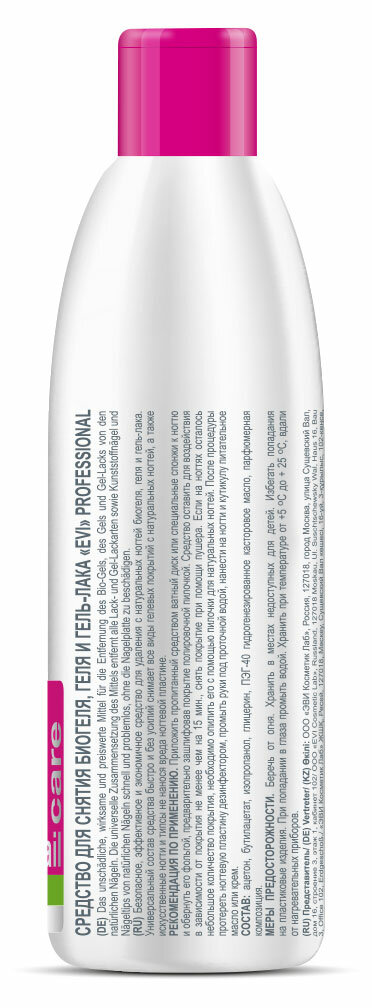 Ниже Вы можете прочитать отзывы на Средство для снятия биогеля геля гель-лака EVI professional, 250 мл, ознакомится с подробными характеристиками, посмотреть интересные обзоры и фотографии на Средство для снятия биогеля геля гель-лака EVI professional, 250 мл.