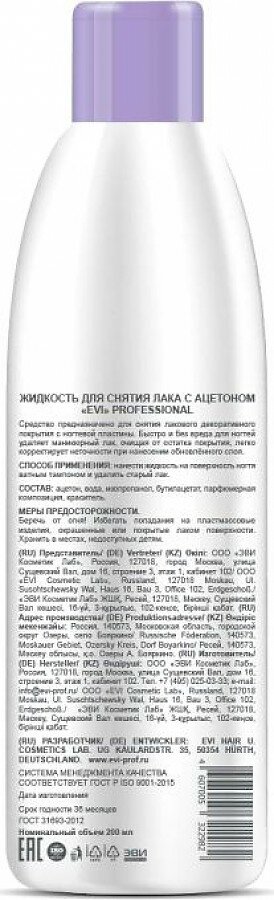 EVI professional Жидкость профессиональная для снятия лака с ацетоном, 150 мл