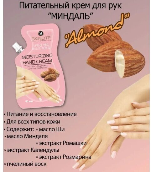 Питательный крем для рук SKINLITE миндаль, 50 г интересное: