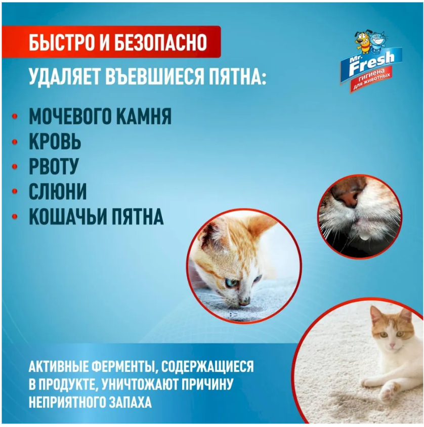 Mr.Fresh спрей Ликвидатор пятен и запаха для кошек 500 мл.
