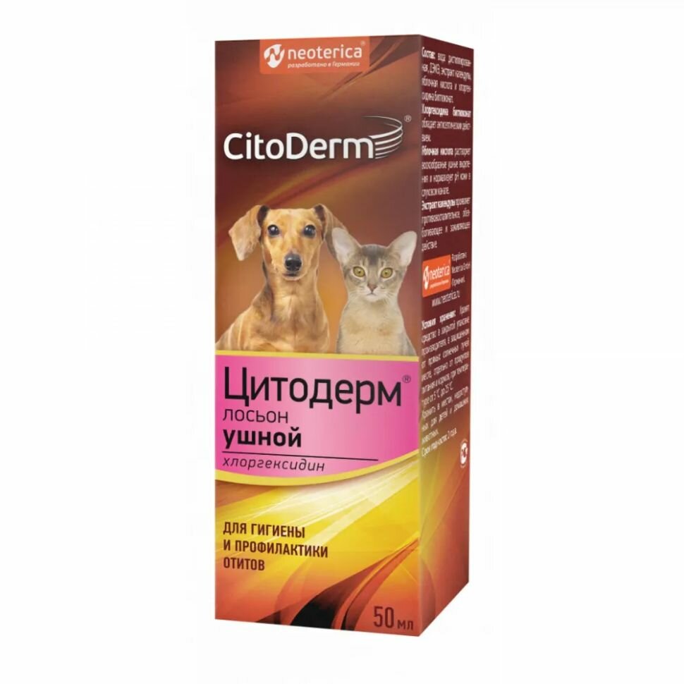 Ушной лосьон для гигиены и профилактики отитов у кошек и собак с хлоргексидином Цитодерм (Neoterica), 50мл Хлоргексидин