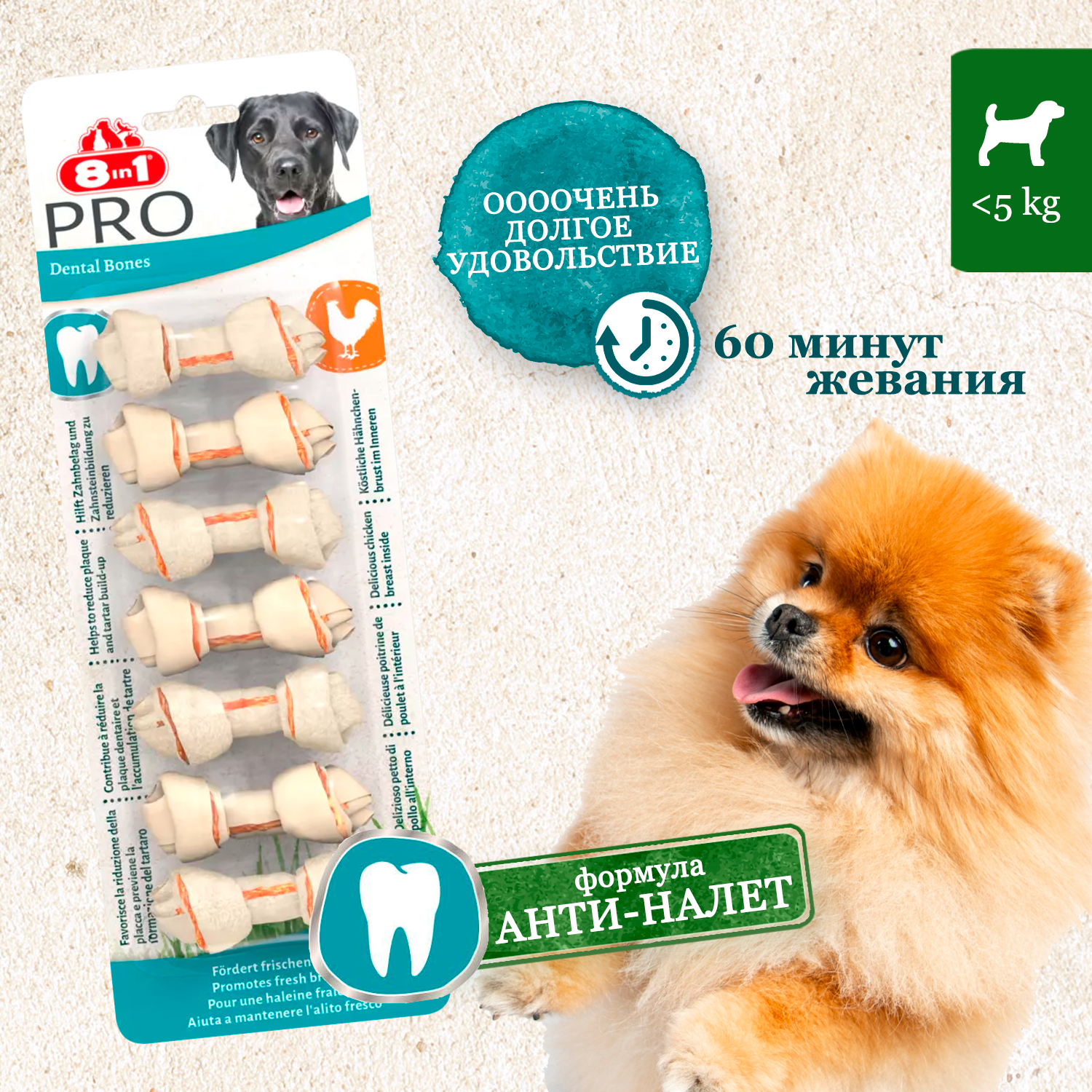 8in1 PRO DENTAL DELIGHTS XS косточки с куриным мясом для собак малых пород, с добавлением минералов, 7 х 7.5 см