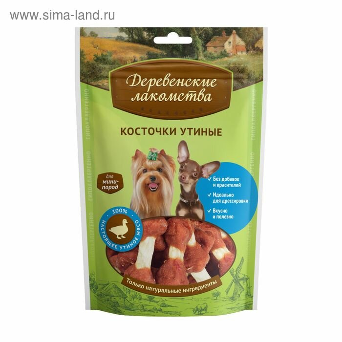 Деревенские лакомства Лакомство для собак мини-пород Косточки утиные, 55 г, 2 уп