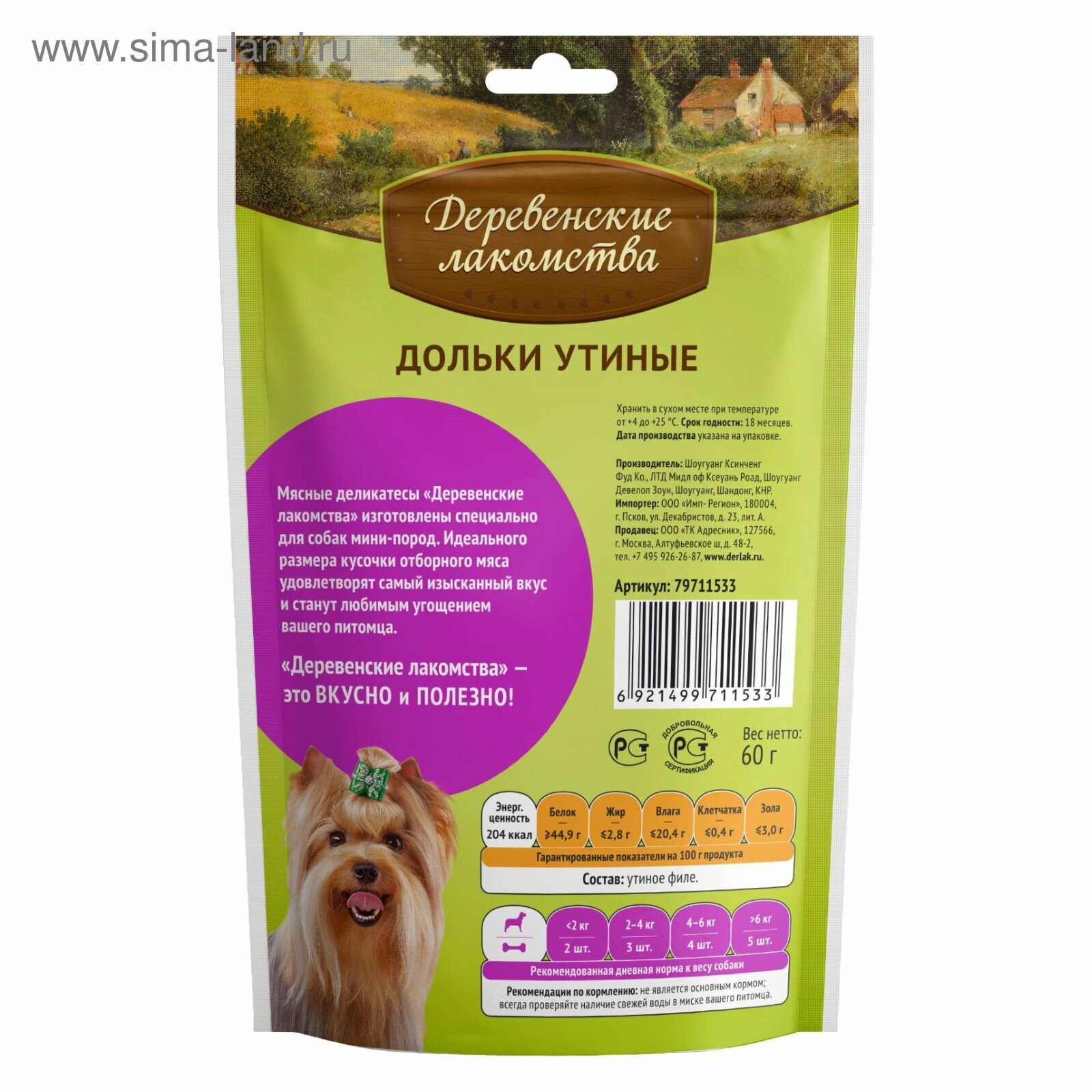 Купить Лакомство деревенские лакомства для мини-пород дольки утиные 55г
