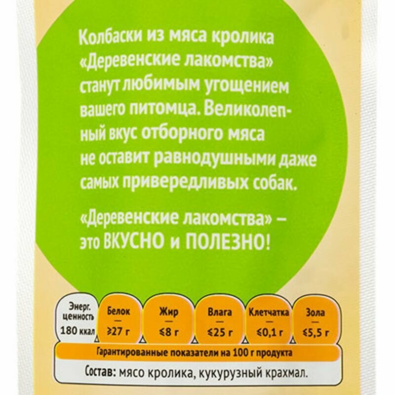 Деревенские лакомства 45 г мясные колбаски из кролика для собак 7 шт