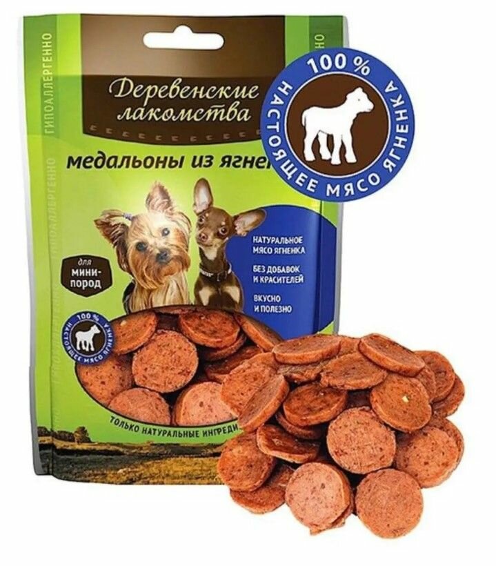 Лакомства для собак Деревенские лакомства для мелких пород медальоны из ягненка 55г / снеки для собак / еда для собак / лакомство для животных