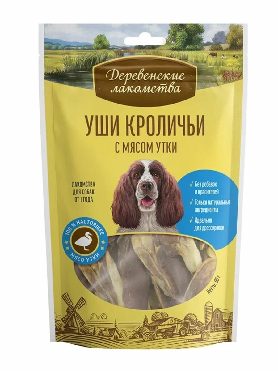 Деревенские лакомства для собак уши кроличьи с мясом утки 90г.
