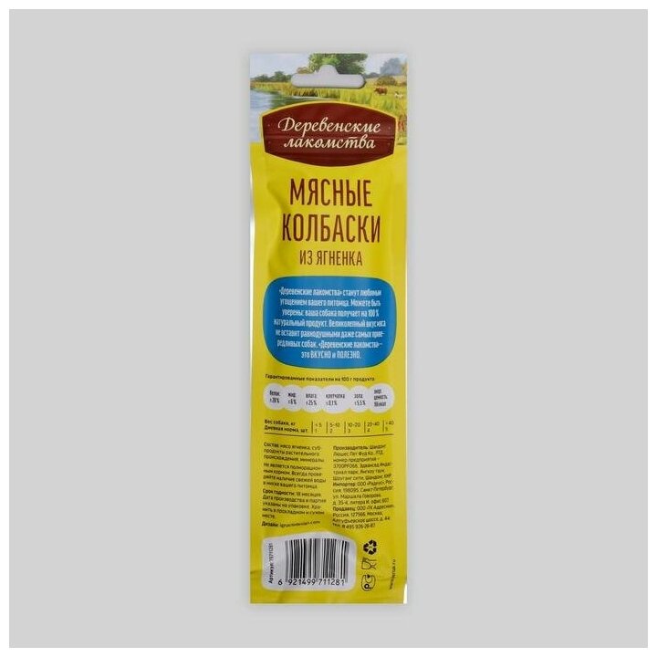 Лакомство Деревенские лакомства Мясные колбаски для собак с ягненком 45г 7шт 79711281