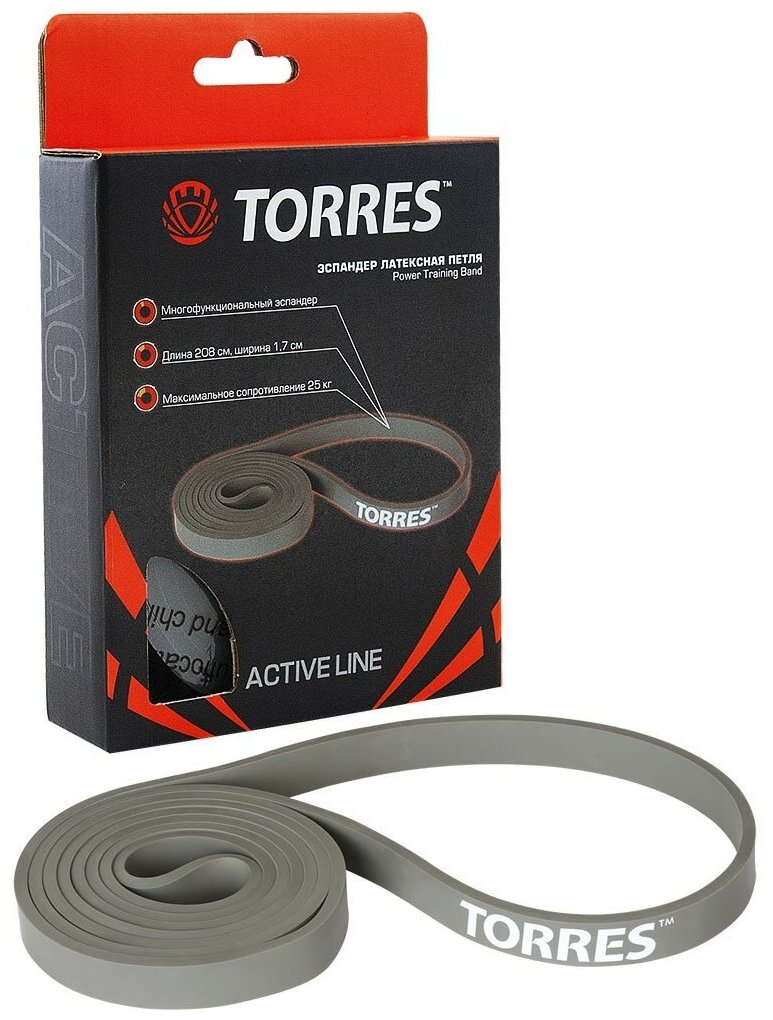 Эспандер TORRES латексная петля, арт. AL0047, длина 208 см, ширина 1.7 см, сопротивление 25, кг, серый