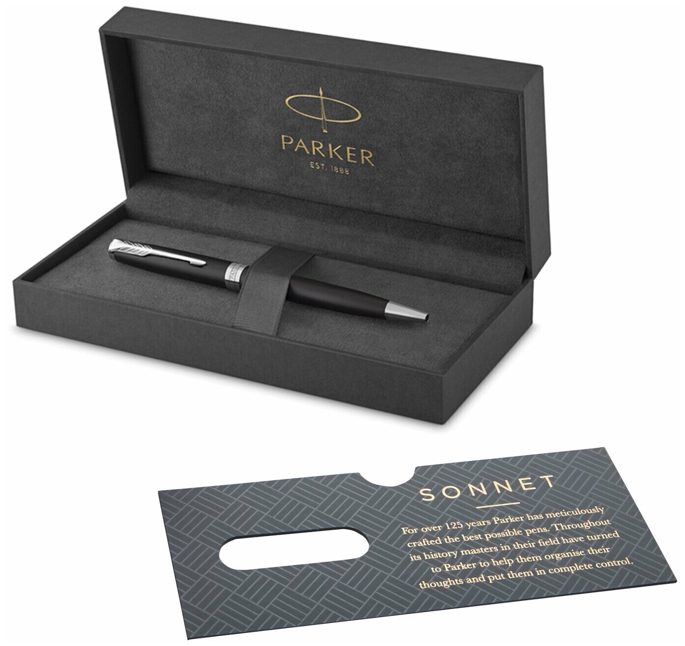 Ручка шариковая автоматическая Parker "Sonnet Matte Black СT", черная, 1,0мм, корпус черный, футляр