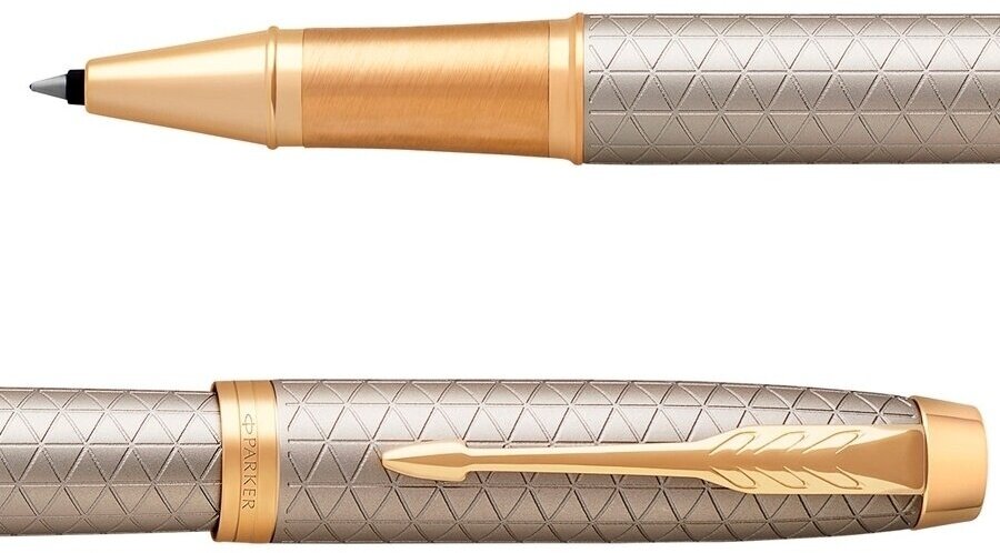 Ручка-роллер Parker Im Premium warm silver gt, корпус серебристый, матовый, позолоченные детали (1931686)