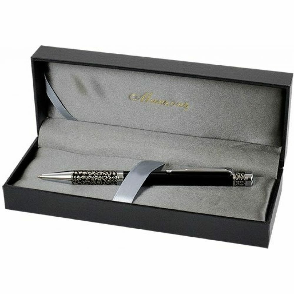 Ручка в футляре механическая (поворотная) Marinella 1,0мм металлический черный/серебристый корпус синяя (картонная упаковка) (16018)