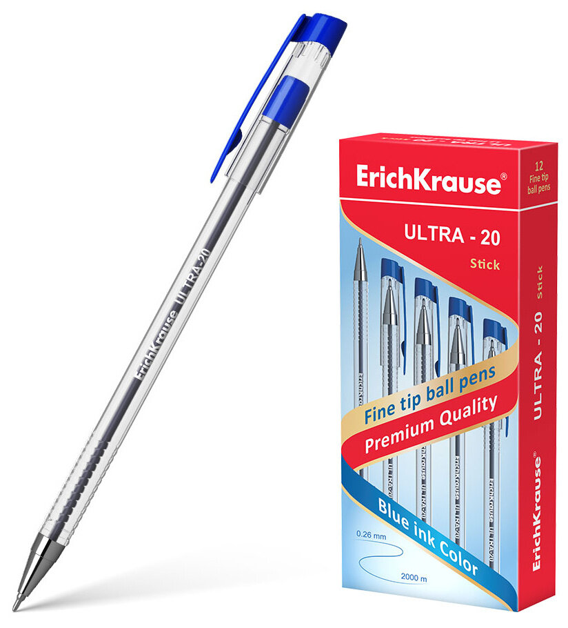 Ручка шариковая ErichKrause ULTRA-20, цвет чернил синий (в коробке по 12 шт.)