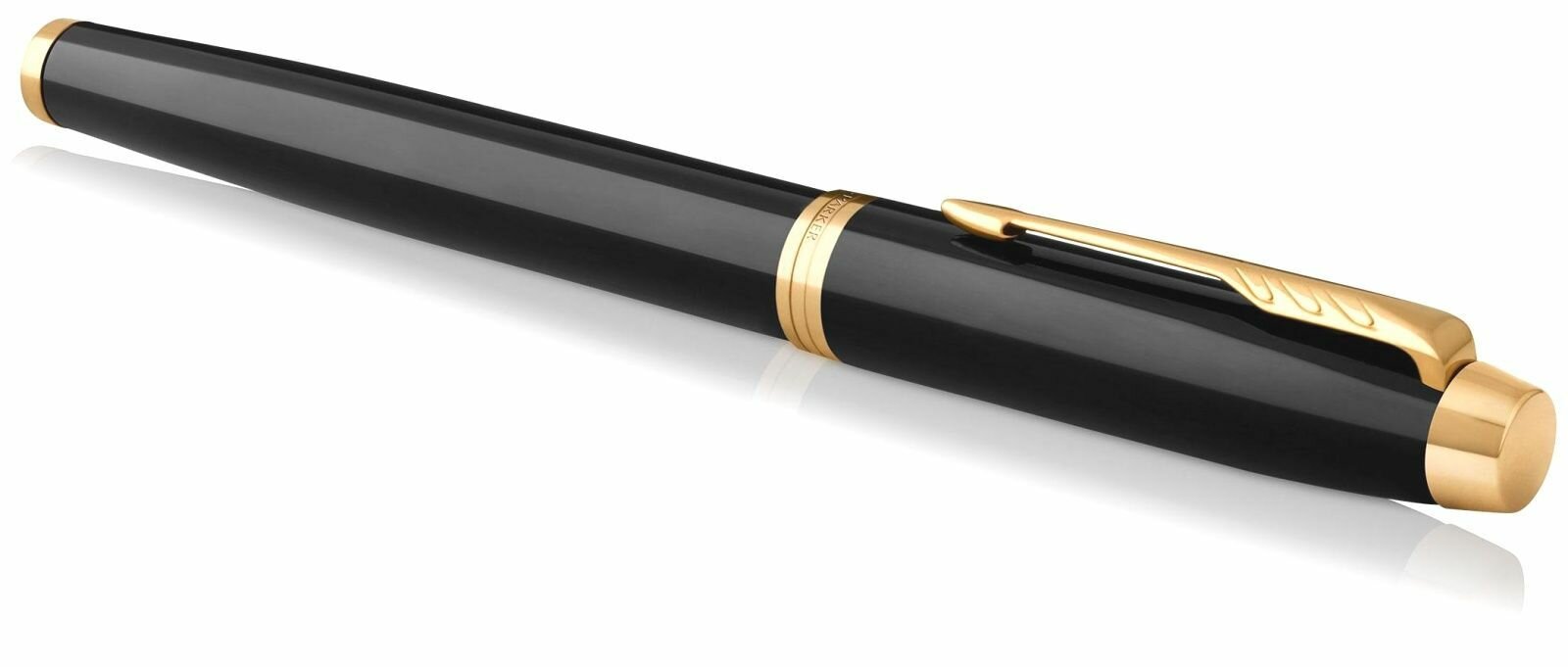 Ручка-роллер Parker "IM Core Black Lacquer GT", корпус черный глянцевый лак, позолоченные детали, черная (1931659)